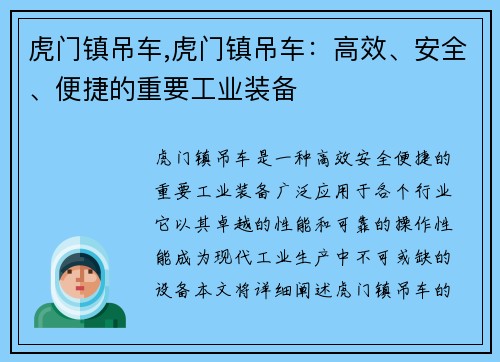 本文将围绕青岛吊车处理网展开详细介绍,从六个方面对其进行分析。 公司背景 青岛吊车处理网是一家专业的吊车租赁服务提供商,拥有多年的行业经验和丰富的项目案例。公司以提供高效、安全的吊车租赁服务而闻名,深...