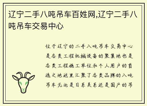 青岛吊车处理网(青岛吊车处理网:专业高效的吊车租赁服务)